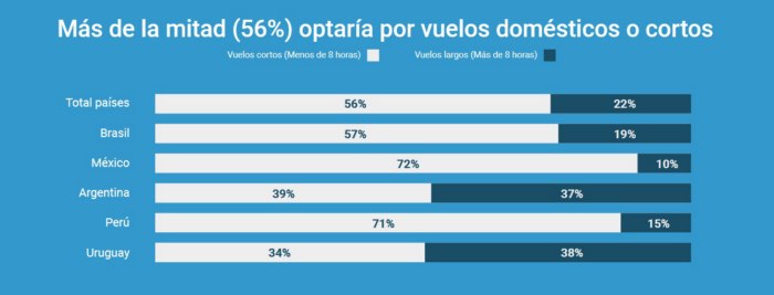 Encuestados de Argentina y Uruguay mostraron la mayor inclinación hacia vuelos de larga distancia, con un 37% y 38% respectivamente – casi el doble que en otros países de América Latina.