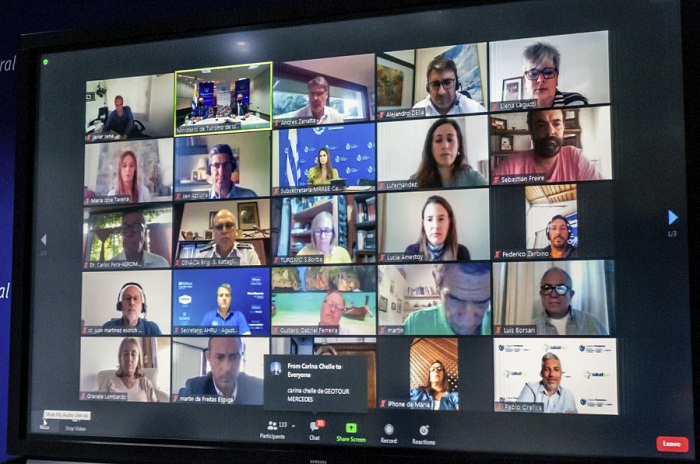 En esta reunión virtual sobre este tema tan relevante, participaron más de 150 personas. Estuvo dirigida a las gremiales de turismo, los representantes de las aerolíneas y aeropuertos, y contó con la participación de los directores de Turismo de los 19 departamentos del país.