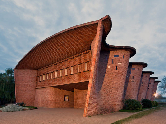 La iglesia de Atlántida, con su campanario y su baptisterio subterráneo, se encuentra en Estación Atlántida, en el departamento de Canelones, y fue construida entre 1958 y 1960. El conjunto modernista, inspirado en la arquitectura religiosa paleocristiana y medieval italiana, representa una novedosa utilización del ladrillo a la vista y reforzado. Construida sobre una planta rectangular de una sola nave, la iglesia presenta unos característicos muros ondulados que soportan una cubierta igualmente ondulada, compuesta por una secuencia de bóvedas gaussianas de ladrillo reforzado desarrollada por el ingeniero Eladio Dieste (1917-2000).