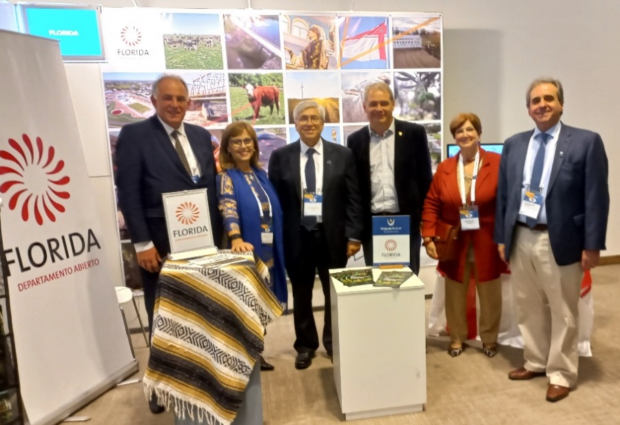 Stand de Florida: Roque Baudean, DNT; Carmen Passarella, DT de Florida; ministro Tabaré Viera; intendente Guillermo López; María Shaw, Pte. del CIPETUR; subsecretario Remo Monzeglio