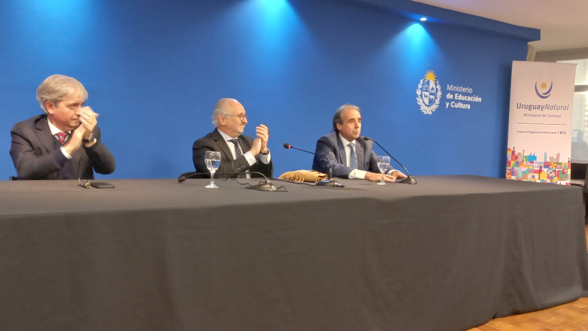 Director general del MEC, Pablo Landoni; ministro de Educación y Cultura, Pablo da Silveira; ministro (i) de Turismo, Remo Monzeglio