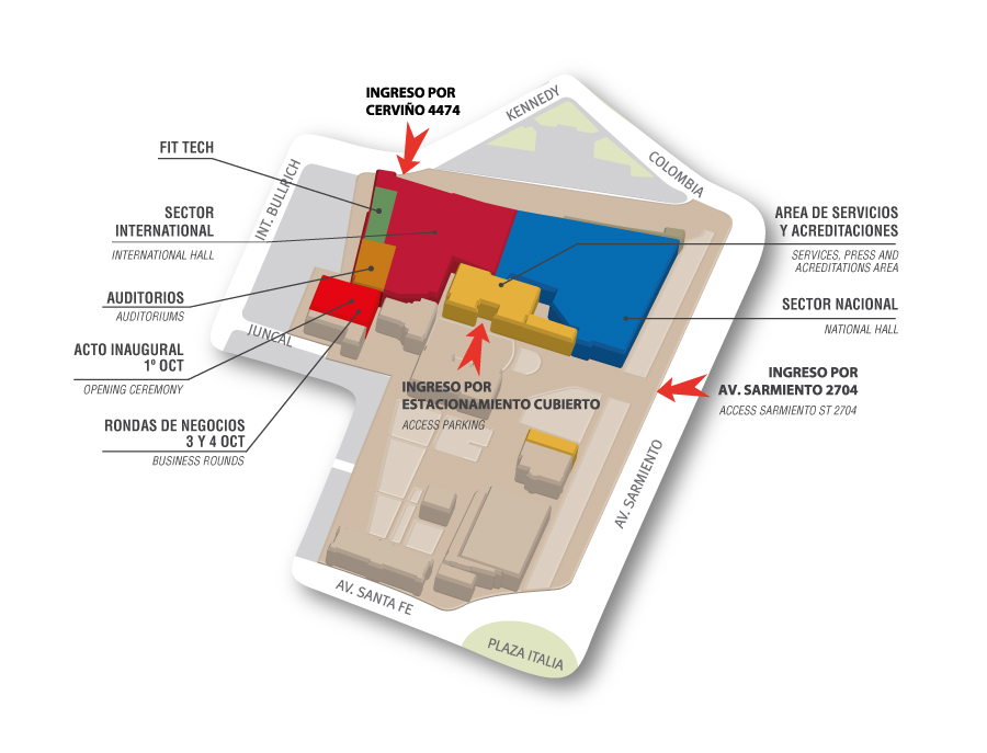 Plano de la FIT 2022 en el predio ferial de La Rural de Buenos Aires