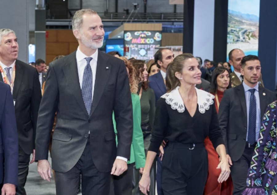 LETIZIA. Es inevitable que la habitual presencia de los Reyes en la inauguración de FITUR atraiga las miradas sobre la reina Letizia y su atuendo que casi siempre sorprende. Este año, según me soplan los colegas de Vanitatis llevaba una combinación en blanco y negro con jersey, de la firma francesa Sandro, de punto negro de alpaca y lana, con escote en V y cuello extraíble de popelina en blanco (141 euros en rebajas), pantalones, modelo Tapia de Hugo Boss, con pinzas y diseñados en crepé japonés con elástico natural y resistencia a las arrugas (199 euros), en los pies botas de piel negra de Unisa, con punta cuadrada y fabricadas en piel y tejido elástico efecto piel con cremallera interior (139 euros, también en rebajas). En la comitiva inaugural, además de la presidenta de Madrid, Isabel Díaz Ayuso, estaban la ministra de Turismo, Reyes Maroto y el alcalde de Madrid, José Luis Martínez Almeida, rivales en las próximas elecciones municipales pero correctos en el trato... aunque tampoco hablaron mucho.