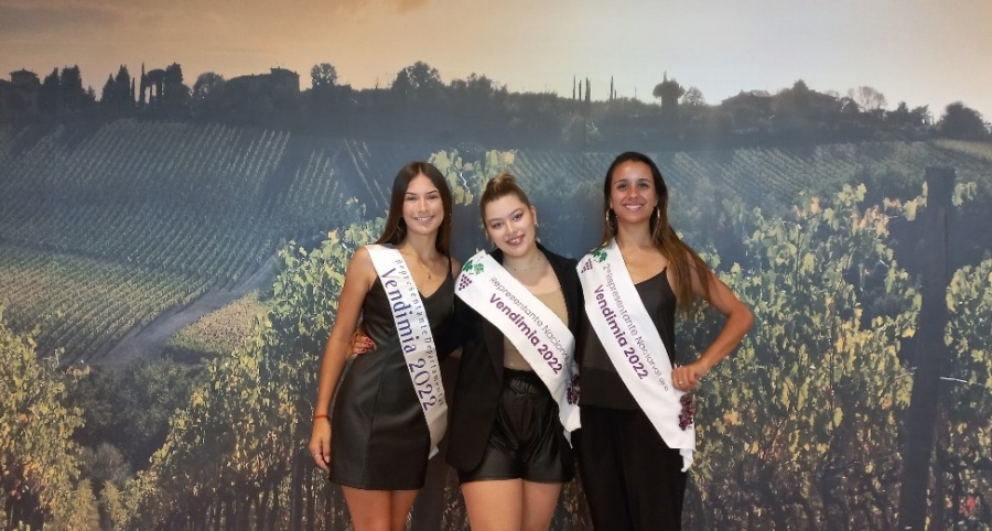 Camila Berdía, representante de Canelones; Yanina Morella, representante Nacional de la Vendimia; Abigail Albornoz, vice representante de la Vendimia