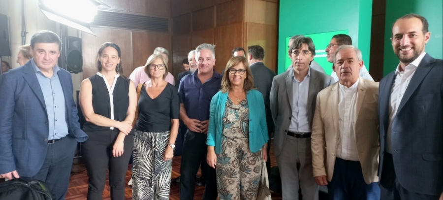 Fernando Amado, DT de Montevideo; Pablo Pesce, de AHRU y CAMTUR; senadora Liliam Kechichian; intendente Carolina Cosse; Francisco Rodríguez, de CAMTUR y AHRU; Alberto Latarowski, de AHRU; Karina Fortete, de la DT de Montevideo; Francisco Lorente, de AHRU