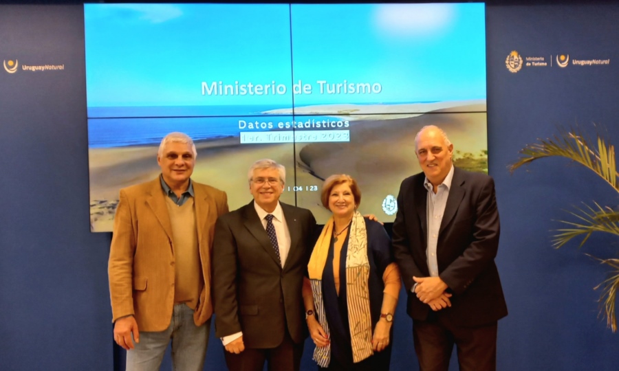 Había gran expectativa por tener las cifras oficiales de los tres primeros meses del año. Por eso, el miércoles 19 de abril, la sala Arredondo de la sede ministerial estaba completa, con la presencia del subsecretario de Turismo, Remo Monzeglio; el director general de Secretaría del Ministerio, Ignacio Curbelo; el director nacional de Turismo, Roque Baudean; el presidente de la ANP, Juan Curbelo; jerarcas de otras reparticiones del estado, autoridades departamentales, referentes institucionales y del sector privado, como la presidente y el secretario de la Cámara Uruguaya de Turismo, Marina Cantera y Alejandro D’Elía respectivamente; el presidente de la Asociación Turística de Montevideo, Gustavo Pascuali; la presidente del CIPETUR, María Shaw y los socios Freddy Caruso y Eduardo Segredo.