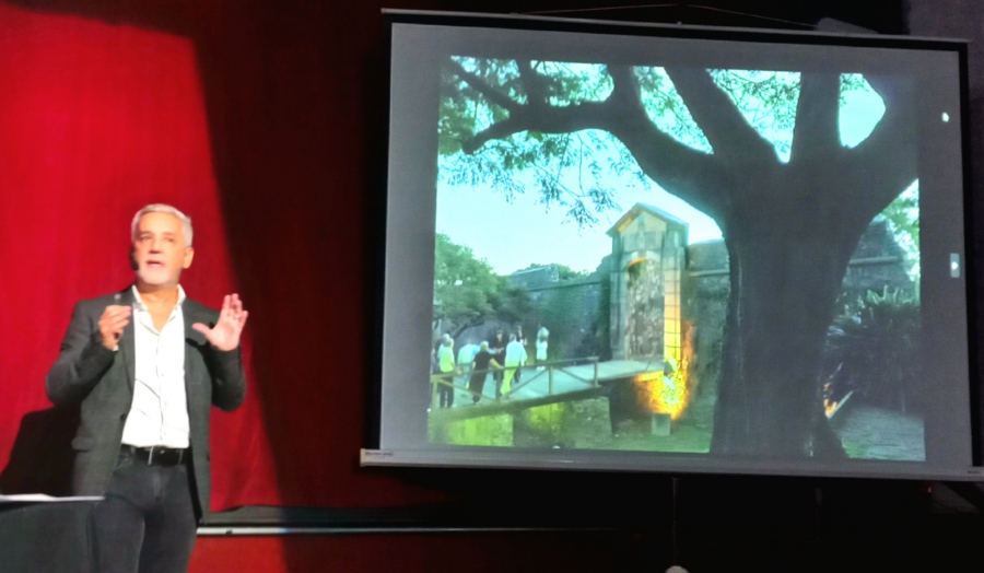 La mañana prosiguió con tres charlas institucionales: el secretario general de la Comisión Nacional de Uruguay para la UNESCO, Marcello Figueredo, propuso “Rutas UNESCO: un viaje de Abu Simbel a Estación Atlántida”. Inició expresando: “el patrimonio dejó de ser algo del pasado; es del futuro, es algo vivo, que cambia constantemente”. Incursionó en la historia de la UNESCO y en la de los nueve sitios patrimoniales de nuestro país, ¡tan diversos! Ratificó que Colonia tiene un “valor universal excepcional”, habló de gestión, del “matrimonio con el turismo”, y enfatizó en que “hay que preservar el alma del lugar”.