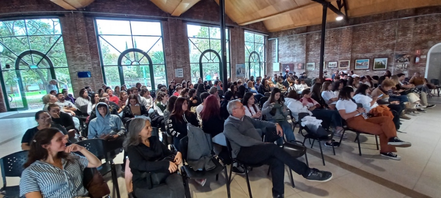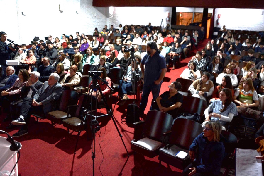 La platea del Bastión del Carmen estaba a pleno, con unos 150 docentes y estudiantes llegados de Conchillas, Ombúes de Lavalle, Tarariras, Juan Lacaze, Colonia Valdense, Rosario y de la propia Colonia.