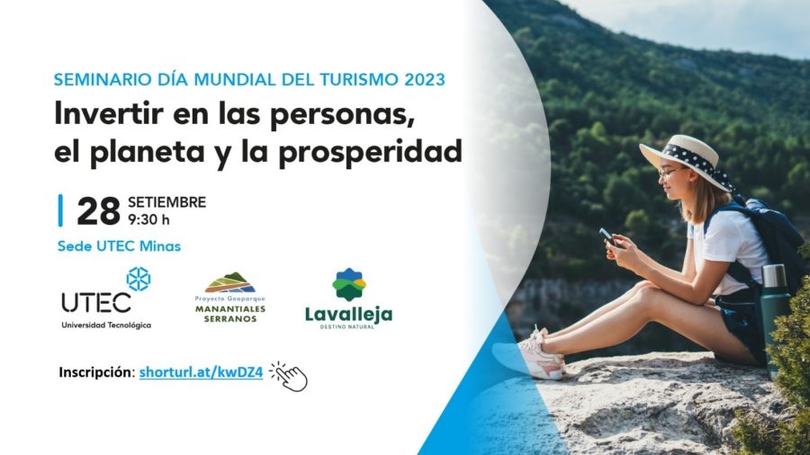 La Universidad Tecnológica del Uruguay –UTEC- organiza un Seminario en dos sedes, por el Día Mundial del Turismo 2023. “Invertir en las personas, el planeta y la prosperidad”. El jueves 28 de septiembre, a las 09.30 horas en la sede UTEC Minas. Apoya: Proyecto Geoparque Manantiales Serranos y Lavalleja, destino natural. Inscripciones: www.shorturl.at/kwDZ4