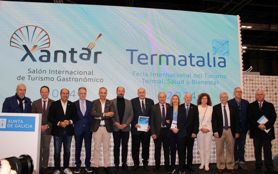 En el stand de Galicia, el viernes 26, se presentó Termatalia 2024. Se trata de la edición número 22 de la Feria Internacional de Turismo Termal, Salud y Bienestar, que vuelve a Ourense, del 26 al 28 de septiembre. En la ocasión, la organización Expourense distinguió al ministro Viera por la exitosa Termatalia 2023, celebrada en nuestro país el pasado septiembre, en el Destino Termas.