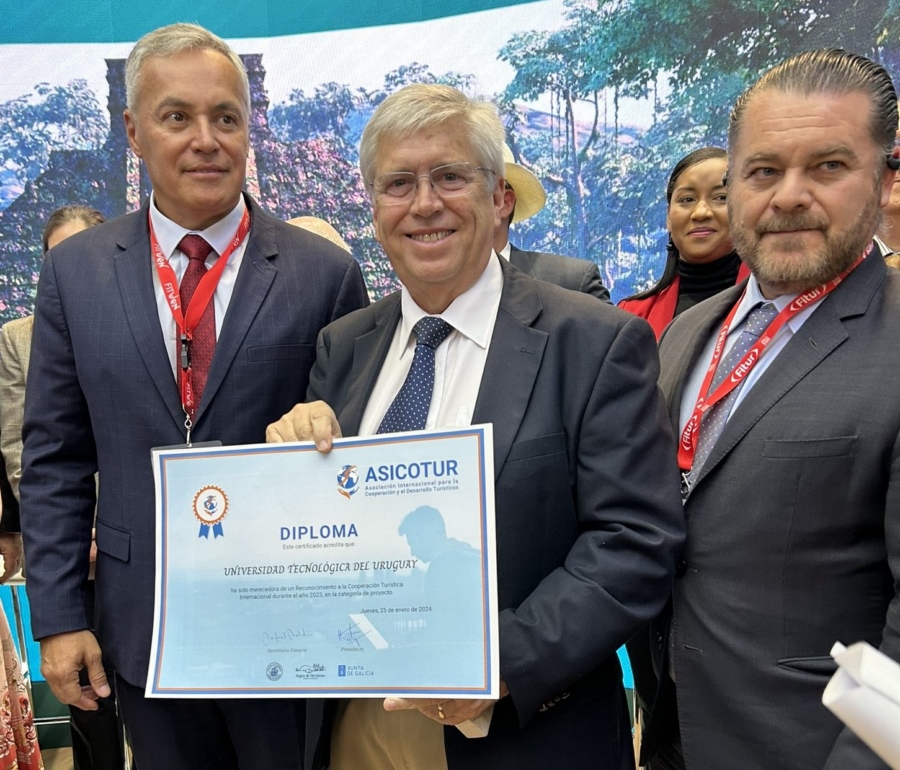 El jueves 25, ASICOTUR, la Asociación Internacional para la Cooperación y el Desarrollo Turístico, con sede en España, reunió a sus autoridades y delegados de 35 países de habla hispana y portuguesa de todo el mundo, en el stand de México, para presentar sus actividades de 2024 y entregar distinciones. El ministro Tabaré Viera recobió el diploma con el reconocimiento al proyecto “Diseño e implementación de especialización virtual en Tecnoturismo para el aumento de la empleabilidad y reconversión económica del sector”, llevado adelante por la UTEC, la Universidad Tecnológica del Uruguay, con el apoyo de la representación de OEA en Uruguay y AUCI, la Agencia Uruguaya de Capacitación Internacional.