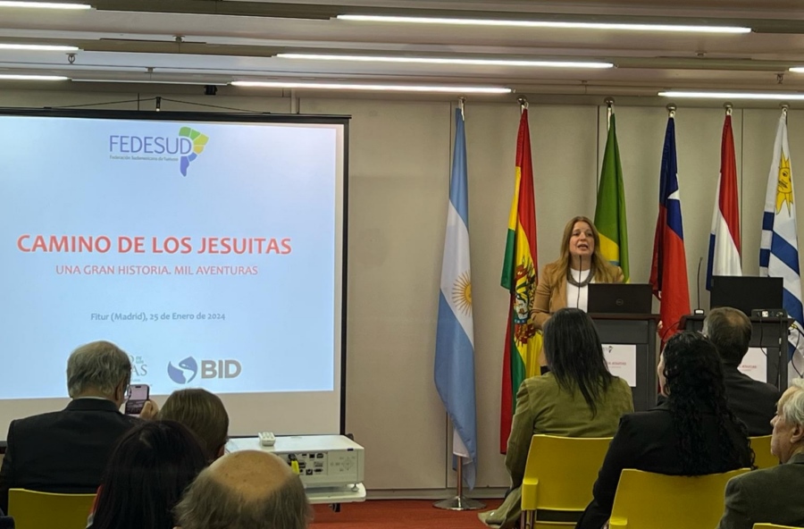 En esa jornada, Uruguay participó en la presentación del proyecto “Camino de los Jesuitas”, que lleva adelante FEDESUD, la Federación Sudamericana de Turismo, bajo el lema “Una gran historia. Mil aventuras”. Se trata de una nueva ruta por el corazón de América del Sur, a través del legado jesuítico y los innumerables sitios Patrimonio de la Humanidad por la UNESCO, que transcurre por Argentina, Bolivia, Brasil, Paraguay y Uruguay y al que recientemente se ha sumado Chile. Apoya el proyecto SIRTA (Sistema de Inteligencia Turística) y el BID. Estuvieron presentes: Angie Duarte, ministra de Turismo de Paraguay; Tabaré Viera, ministro de Turismo de Uruguay; Verónica Pardo, subsecretaria de Turismo de Chile; Nardy Suxo, embajadora de Bolivia; Roberto Bosch, encargado de Negocios de Argentina; Gustavo Santos, director regional de ONU Turismo para las Américas; así como la presidente de FEDESUD, Marina Cantera y el coordinador Maximiliano Mauvecín y representantes de las cámaras de Turismo que forman la FEDESUD.