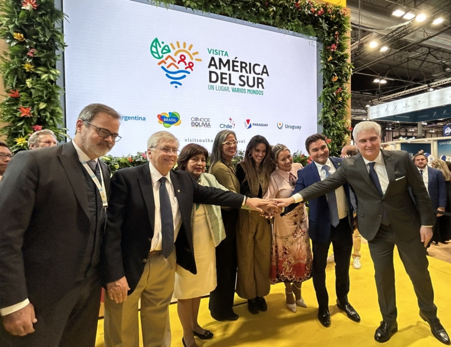 También esa tarde, pero en el stand de Brasil, tuvo lugar la presentación oficial de la marca y del video promocional de “Visita América del Sur” (Visit South America”). Allí se reunieron los ministros y secretarios de Turismo del Mercosur: de Argentina, Bolivia, Brasil, Chile, Paraguay y Uruguay. La colorida imagen, enmarcada en el perfil del continente, representa la selva, la montaña, la costa, el sol y las personas. Busca mostrar a Sudamérica como un continente de oportunidades para descubrir y encontrarse con su naturaleza, gastronomía y hospitalidad. Bajo el lema ”Un lugar, varios mundos”, este esfuerzo de unificar la promoción en terceros mercados, es un paso significativo hacia la consolidación de la identidad y la difusión del atractivo turístico del continente sudamericano. Acompañaron autoridades de la FEDESUD y otros referentes.