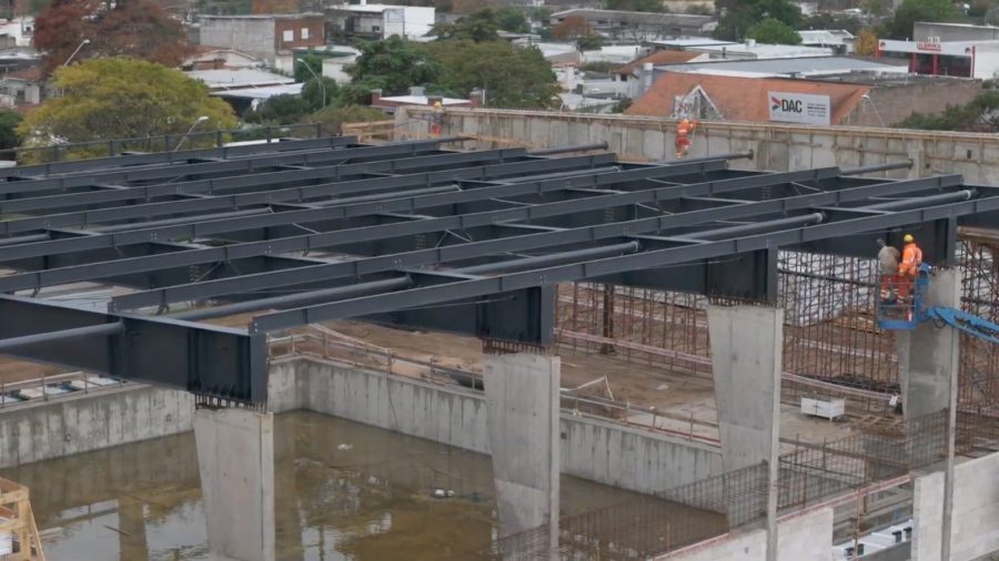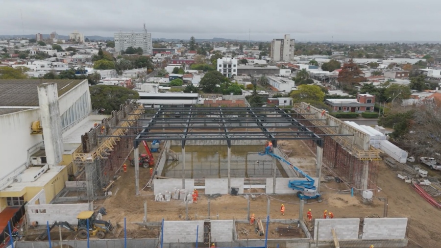 Destacó que se realizó el vaso de la piscina -estructura que contiene el agua y sobre la cual van montados los diferentes accesorios que permitirán el buen funcionamiento- y que está armada la estructura para la colocación del techo.