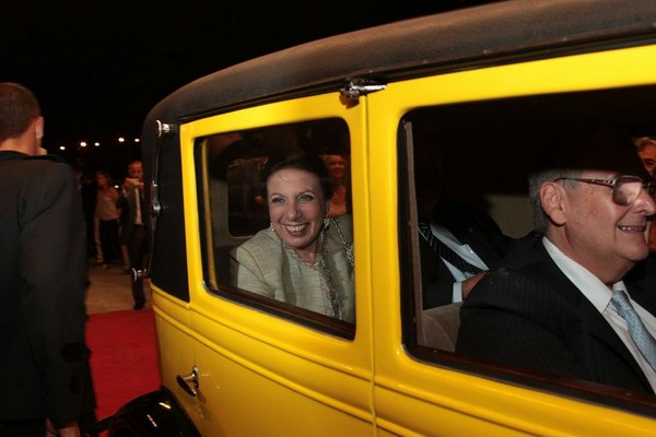 La Intendenta de Montevideo Ana Olivera llega en una "cachila" de 1931