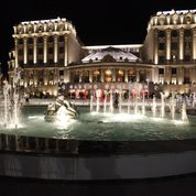 Más tarde bajamos las escaleras de mármol que rodean el hotel por el sector que da a la plazoleta de las calles Carlos F. Sáez y Rostand, donde destaca una fuente con juego de aguas y al centro la estatua La Vendimia. En esa zona, el tango, el candombe y el malambo fueron los protagonistas.