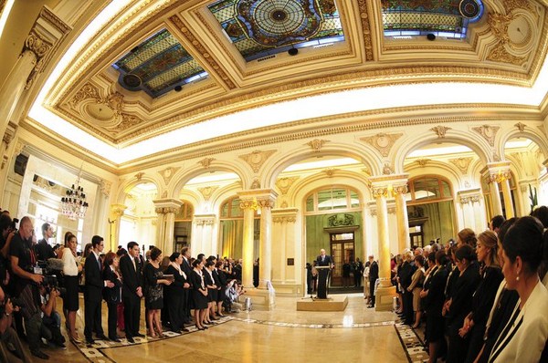 Luego del acto solemne, se pudo acceder a las renovadas instalaciones del “piano nobile”: la “Tea Gallery”, el lobby con la recepción, el lounge bar Thays y el restaurante 1921. Todos observábamos los detalles de la arquitectura, la decoración, con algo de reverencia y mucha admiración. Las miradas se elevaban, ya que sin duda impactaban los antiguos vitrales restaurados y las grandes arañas de cristal. Llama la atención el impacto de lo moderno en contraste con tanta historia recuperada, incluido muchos elementos del famoso diseñador Philippe Stark.