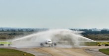 El primer vuelo de la aerolínea chilena SKY arribó a nuestro país el 12 de septiembre, iniciando así sus operaciones diarias entre la capital chilena y Montevideo.
