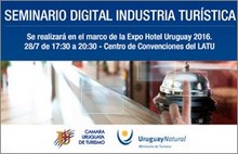 La Cámara Uruguaya de Turismo organiza el Seminario Digital Industria Turística, con el apoyo del Ministerio de Turismo. El mismo se desarrollará el jueves 28 de julio de 2016, en el marco de la ExpoHotel, en el Centro de Convenciones del LATU, de 17:30 a 20:30 horas.